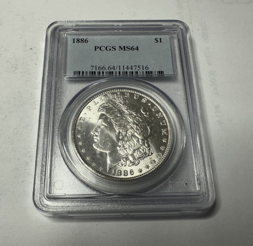1886 MS64 Morgan Silver Dollar, graded. 1886 MS64 Morgan Silver Dollar, graded.