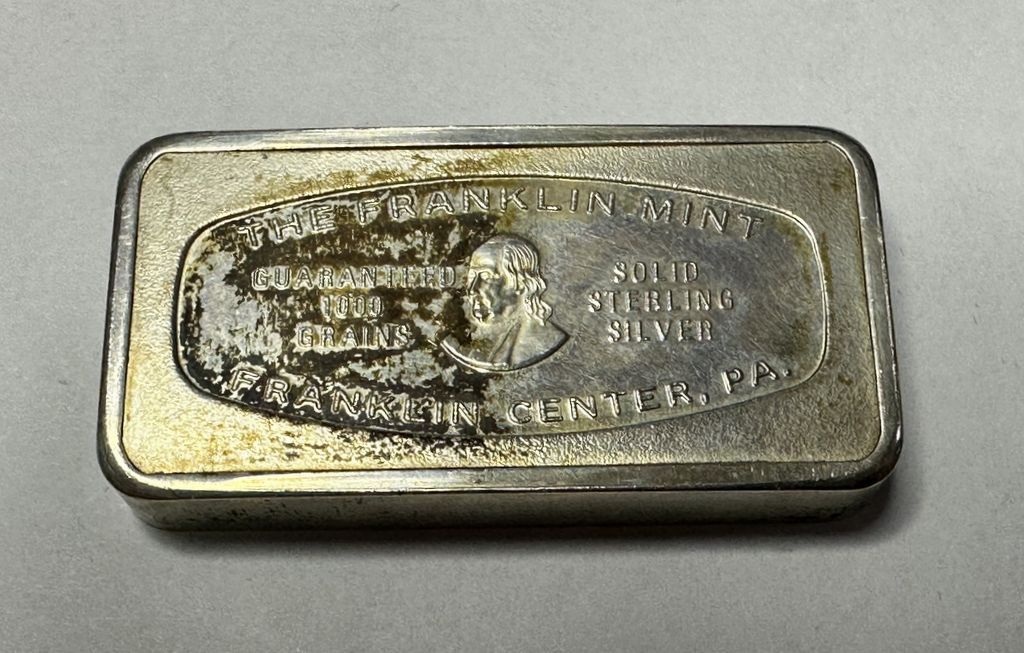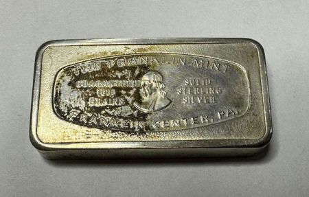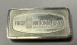 First National Bank, Jackson MS Franklin Mint 1000 Grains Sterling Bar, 2.115 ozt. First National Bank, Jackson MS Franklin Mint 1000 Grains Sterling Bar, 2.115 ozt.