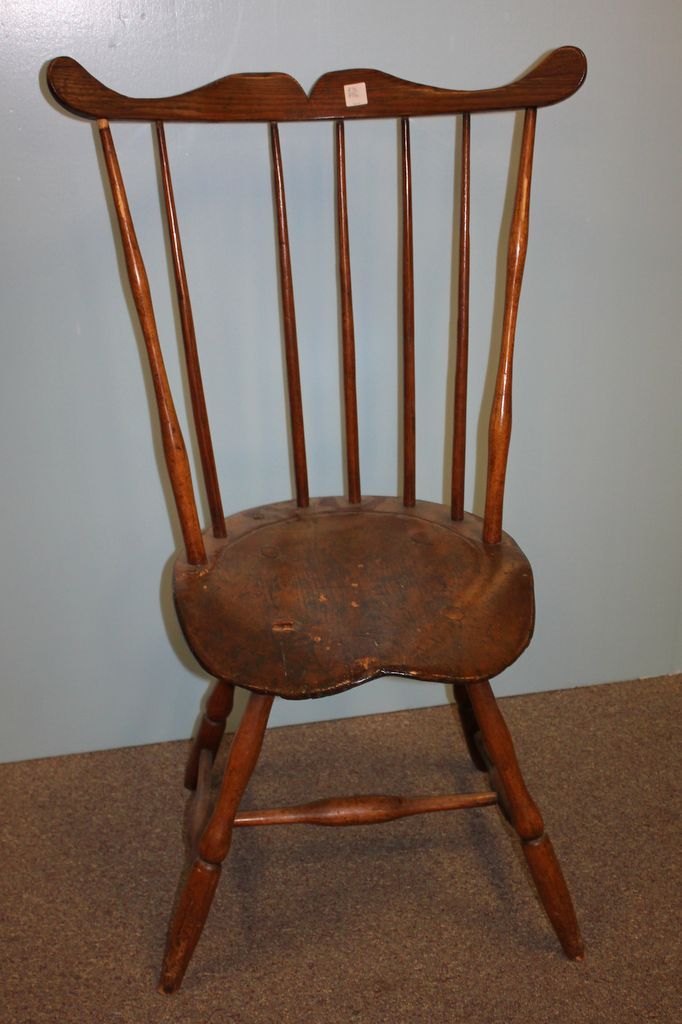 Early Windsor Chair with Unusual Round Seat; 17" w., 16 1/2" d., 37" h. Early Windsor Chair with Unusual Round Seat; 17" w., 16 1/2" d., 37" h.