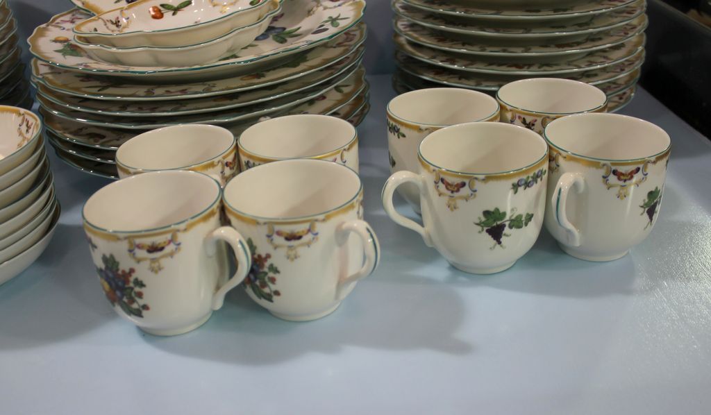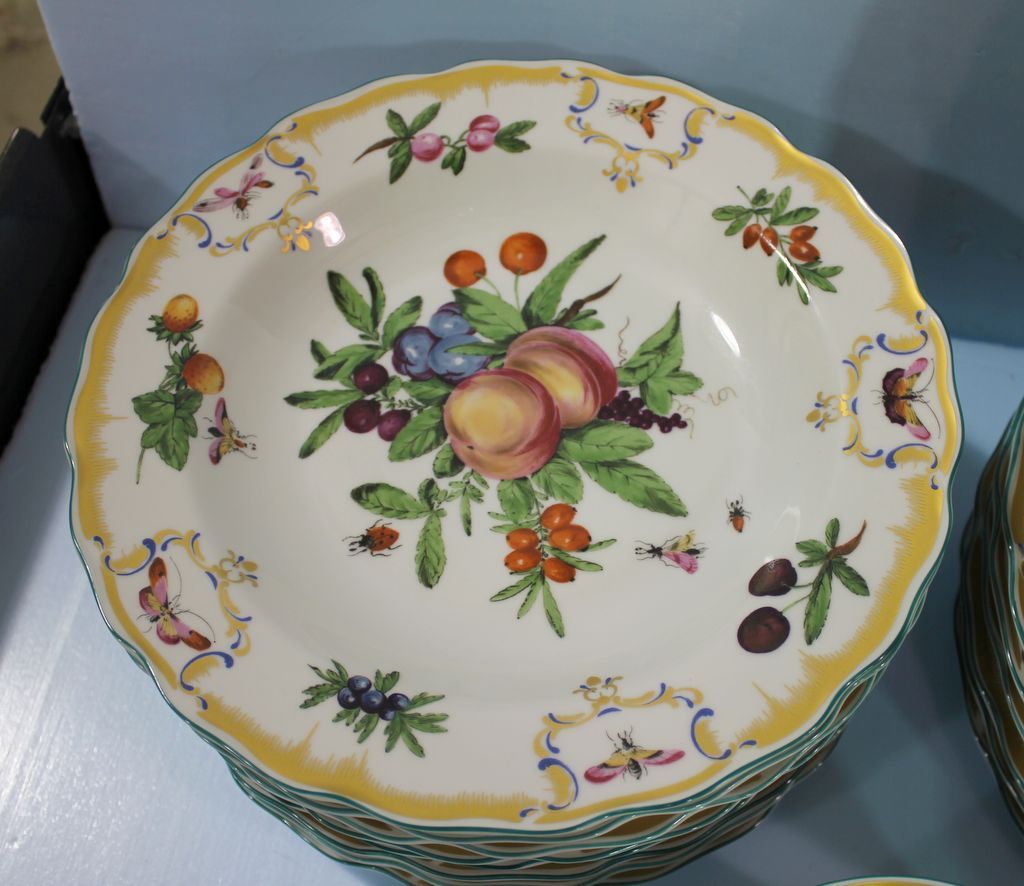 Set of Dinnerware, Mettahedeh "Duke of Gloucester", includes eight dinner places (one chipped) 10 1/4", eight soup bowls 8"-10", eight salad or dessert places 8 1/4", eight cups and saucers Set of Dinnerware, Mettahedeh "Duke of Gloucester", includes eight dinner places (one chipped) 10 1/4", eight soup bowls 8"-10", eight salad or dessert places 8 1/4", eight cups and saucers