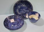 Three Pieces Early Staffordshire; cup (rim chips), bowl with crack 5 1/2" dia., bowl (chips) 6" dia. Three Pieces Early Staffordshire; cup (rim chips), bowl with crack 5 1/2" dia., bowl (chips) 6" dia.