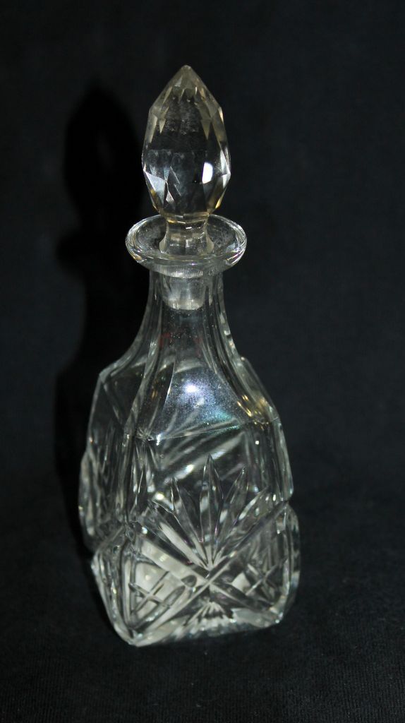 Vintage Cut Glass Perfume Bottle, four sided; 5 1/4" h. Vintage Cut Glass Perfume Bottle, four sided; 5 1/4" h.