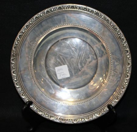 Reed and Barton Round Tray, with shell and fruit border; 9 1/2" dia. Reed and Barton Round Tray, with shell and fruit border; 9 1/2" dia.