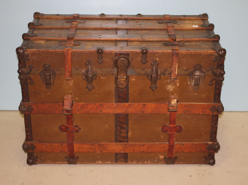 20th Century Steamer Trunk, with wood, leather straps and metal trim; 36" w., 21" d., 25" h. 20th Century Steamer Trunk, with wood, leather straps and metal trim; 36" w., 21" d., 25" h.