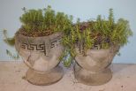 Pair of Greek Key Concrete Urns; 14" dia., 16" h. Pair of Greek Key Concrete Urns; 14" dia., 16" h.