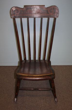 Early Stenciled Hitchcock Rocker; 21" w., 22" d., 26 1/2" h. Early Stenciled Hitchcock Rocker; 21" w., 22" d., 26 1/2" h.