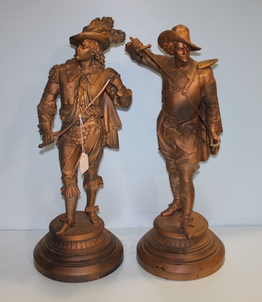 19th Century Pair Spelter Cavalier Figurines; 21" h. 19th Century Pair Spelter Cavalier Figurines; 21" h.