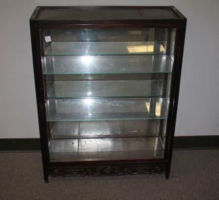 Glass Bookcase with two glass shelves; 36" h., 28" w., 11 1/2" d. Glass Bookcase with two glass shelves; 36" h., 28" w., 11 1/2" d.