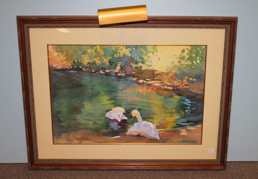 Watercolor of Swans by Mississippi Artist Ann Barron, signed lower right; 40" w., 31" h. Watercolor of Swans by Mississippi Artist Ann Barron, signed lower right; 40" w., 31" h.