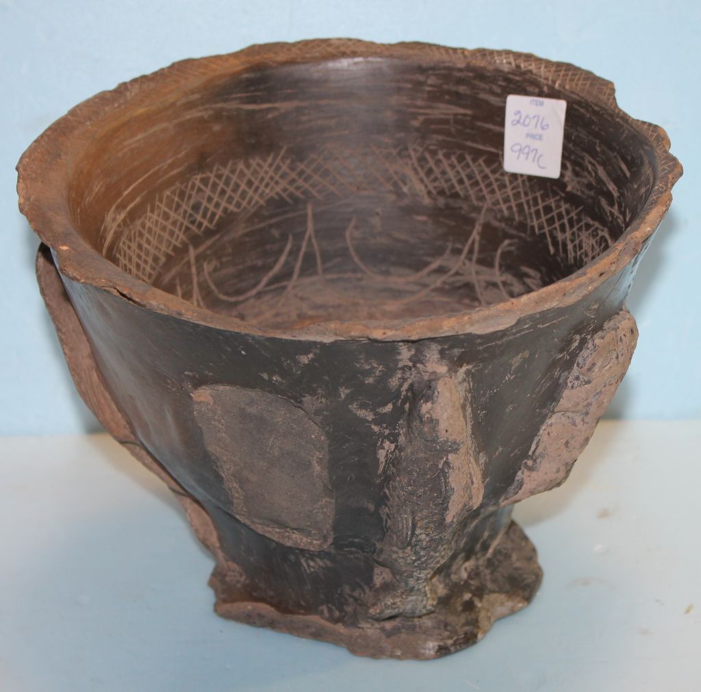 Belize or Cosa Rica Pottery Bowl, circa 1200-1500; Scraffito bowl with fish figures (chips) 7 7/8" dia. Belize or Cosa Rica Pottery Bowl, circa 1200-1500; Scraffito bowl with fish figures (chips) 7 7/8" dia.