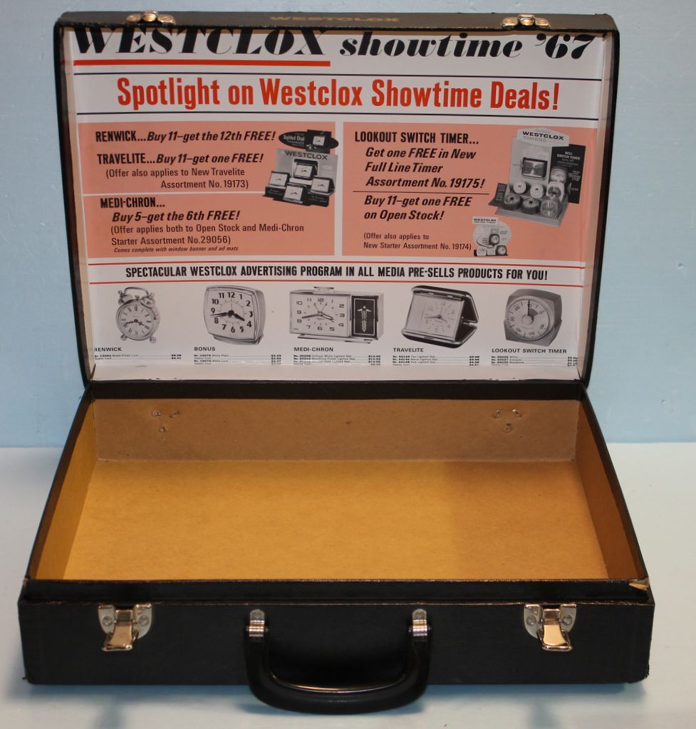 Antique Westclox Salesman Sample Briefcase with Advertising along with Antique Westclox Big Ben Alarm Clock Antique Westclox Salesman Sample Briefcase with Advertising along with Antique Westclox Big Ben Alarm Clock