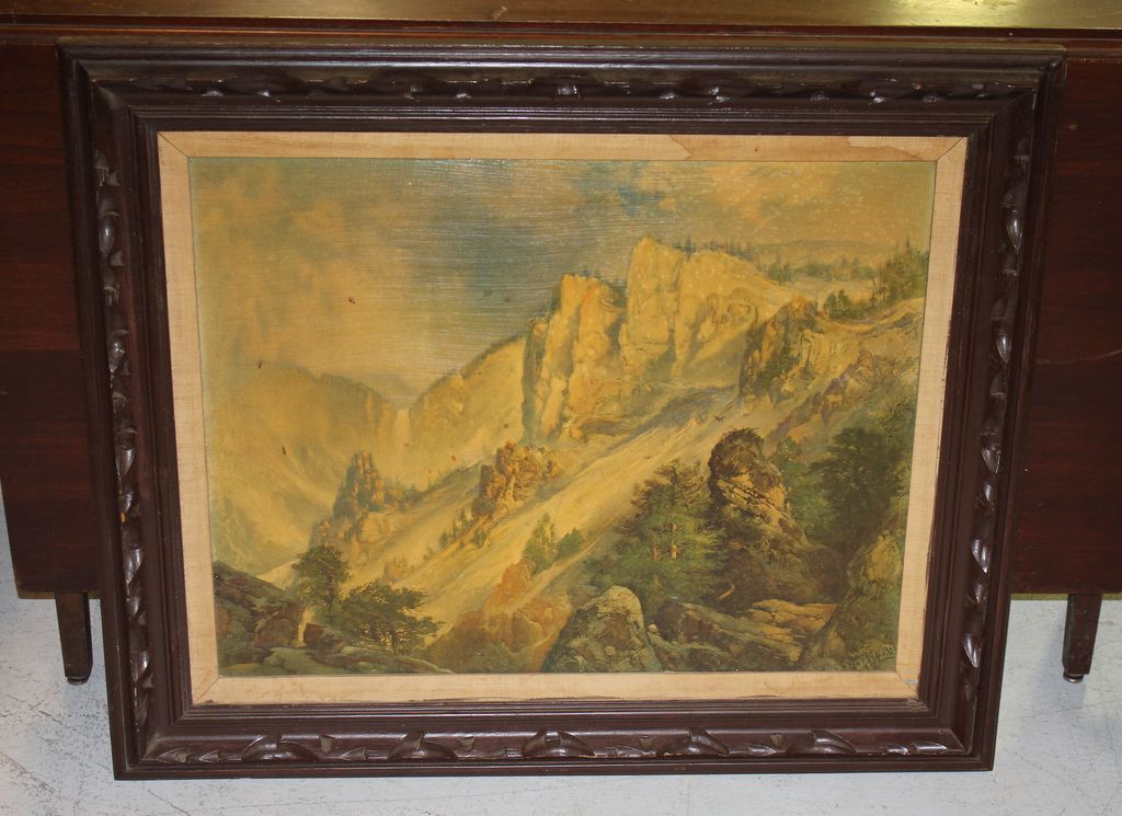 Chromolithograph of Grand Canyon by Thomas Moran, needing to be cleaned; 36 1/2" w., 30" h. Chromolithograph of Grand Canyon by Thomas Moran, needing to be cleaned; 36 1/2" w., 30" h.