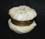 Wavecrest Powder or Dresser Jewelry Box with Hand Painted Flowers; 3 1/4" w., 2 5/8" h. Wavecrest Powder or Dresser Jewelry Box with Hand Painted Flowers; 3 1/4" w., 2 5/8" h.