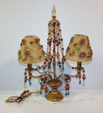 Vintage Brass Two Light Lamp with Beaded Shades, color bead prisms; 20" h., 13" dia. Vintage Brass Two Light Lamp with Beaded Shades, color bead prisms; 20" h., 13" dia.