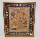 Forbidden Stitch Chinese Scene on Silk, framed; 16 3/4" w., 19 1/2" h. Forbidden Stitch Chinese Scene on Silk, framed; 16 3/4" w., 19 1/2" h.