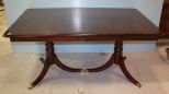 Contemporary Duncan Phyfe Style With Brass Feet, two skirted leaves; 65" w., 43 1/2" d., 30" h., leaves 14 1/2" w. Contemporary Duncan Phyfe Style With Brass Feet, two skirted leaves; 65" w., 43 1/2" d., 30" h., leaves 14 1/2" w.
