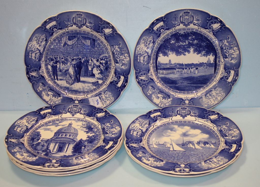2329 Set of Eight Naval Academy Wedgewood Blue and White Plates