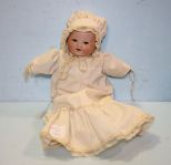 AM Germany Bisque Baby Doll, 13" h., glass eyes, cloth body, composition Hands AM Germany Bisque Baby Doll, 13" h., glass eyes, cloth body, composition Hands