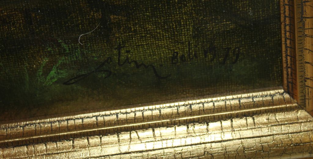 2392 Oil on Canvas of Villagers Entering Estate, signed L. Tim Boli 1979