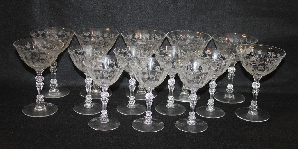 2440 Set of Fourteen Elegant Rose Etched Glasses