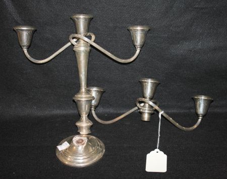 Parts to a Pair of Gorham Sterling Candlesticks; base 4 1/4" dia., cement reinforced, along with two - third arm candle sections 12" w. Parts to a Pair of Gorham Sterling Candlesticks; base 4 1/4" dia., cement reinforced, along with two - third arm candle sections 12" w.