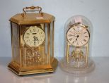 Contemporary Howard Miller Clock Under Dome (8" h., 5 1/2" dia.) along with Benchmark Westminster Clock (in brass case 9" h., 7 1/2" w.) Contemporary Howard Miller Clock Under Dome (8" h., 5 1/2" dia.) along with Benchmark Westminster Clock (in brass case 9" h., 7 1/2" w.)