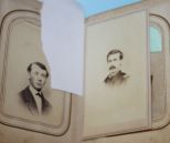 The Photographic Album, New York 1862, album is leather embossed with brass clasp (working). Album has CDV's of civil war soldiers (3, one with tax stamp on back) several tin type photos, approximately 26 pictures The Photographic Album, New York 1862, album is leather embossed with brass clasp (working). Album has CDV's of civil war soldiers (3, one with tax stamp on back) several tin type photos, approximately 26 pictures
