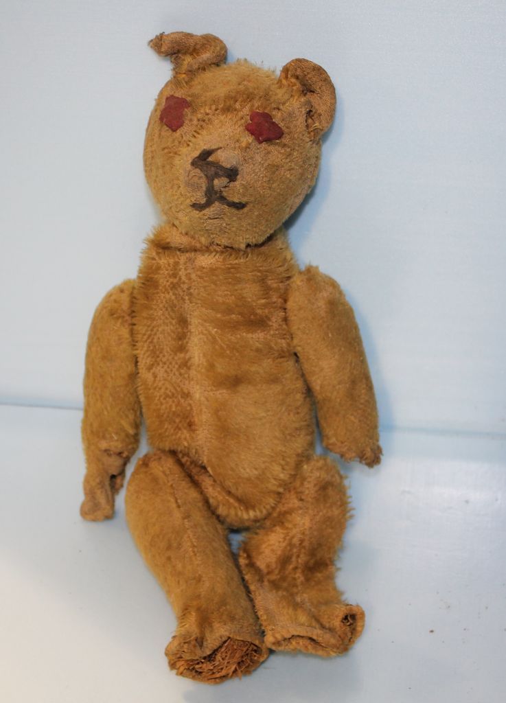 Early Adjustable Arms and Legs Teddy Bear, very worn; 10" h. Early Adjustable Arms and Legs Teddy Bear, very worn; 10" h.