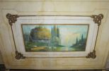 Vintage Hand Painted Metal Single Size Bed, with brass rail on top, finials; 57 3/4" h., 43 1/2" w. Vintage Hand Painted Metal Single Size Bed, with brass rail on top, finials; 57 3/4" h., 43 1/2" w.