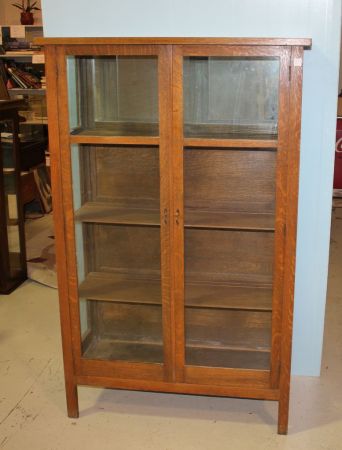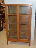 Oak Two Door Glass Display/Bookcase with Three Shelves; 37" w., 14" d., 61 1/2" h. Oak Two Door Glass Display/Bookcase with Three Shelves; 37" w., 14" d., 61 1/2" h.