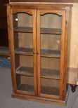 Two Door Oak Bookcase, glass doors, three shelves; 34 1/2" w., 12" d., 57 1/2" h. Two Door Oak Bookcase, glass doors, three shelves; 34 1/2" w., 12" d., 57 1/2" h.