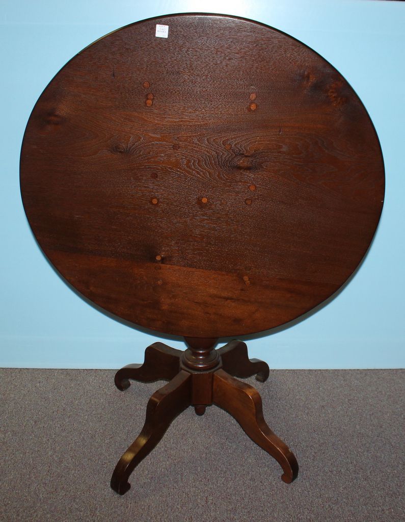 19th century walnut Victorian round tilt top table; 35" dia., 29" h. 19th century walnut Victorian round tilt top table; 35" dia., 29" h.