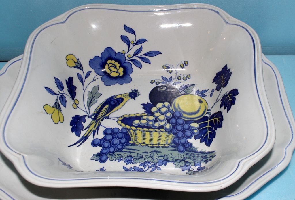 Set of Spode China. Marks Copeland England, Blue Bird with Spode Icon and includes 12 berry bowls, 13 saucers, 12 small saucers, 4 serving pieces, gravy boat, 3 plates, 8 salad plates, 12 large saucers, 2 salad bowls, sugar/creamer. Set of Spode China. Marks Copeland England, Blue Bird with Spode Icon and includes 12 berry bowls, 13 saucers, 12 small saucers, 4 serving pieces, gravy boat, 3 plates, 8 salad plates, 12 large saucers, 2 salad bowls, sugar/creamer.