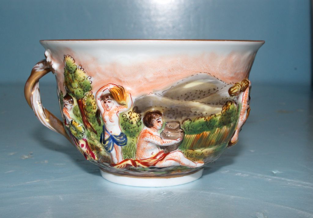 Late nineteenth century set of six hard paste capodimonte five cups and six saucers; 6" w. saucers; 2 1/2" cups Late nineteenth century set of six hard paste capodimonte five cups and six saucers; 6" w. saucers; 2 1/2" cups