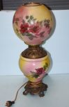 Victorian hand painted Gone with the Wind lamp; 25" h. Victorian hand painted Gone with the Wind lamp; 25" h.