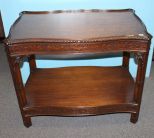 Late 19th century mahogany Chippendale style side table with ornate carving and shelf. The top edge has gadrooning and latticework carving; 31 1/2" w., 18" d., 27" h. Late 19th century mahogany Chippendale style side table with ornate carving and shelf. The top edge has gadrooning and latticework carving; 31 1/2" w., 18" d., 27" h.