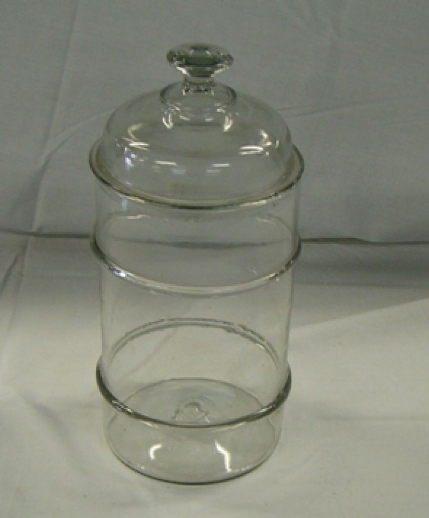 1780 Apothocary Jar with Lid. Applied riblets. Hand blow glass. 14 inches in height, 6 inches wide. 1780 Apothocary Jar with Lid. Applied riblets. Hand blow glass. 14 inches in height, 6 inches wide.