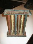 Candle mold with early paint on candle inserts. Red, white and blue. Candle mold with early paint on candle inserts. Red, white and blue.