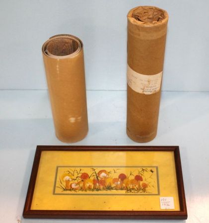 86 191 Nancy Dixon Watercolor, Five Oriental Paper Panels Watercolor, 11 1/2" w., 6 1/2" h. ; panels, 9" w., 23" h.