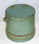 Original blue firkin. 10 inches height, 10 inch wide top, 11 1/2 inch wide base Original blue firkin. 10 inches height, 10 inch wide top, 11 1/2 inch wide base