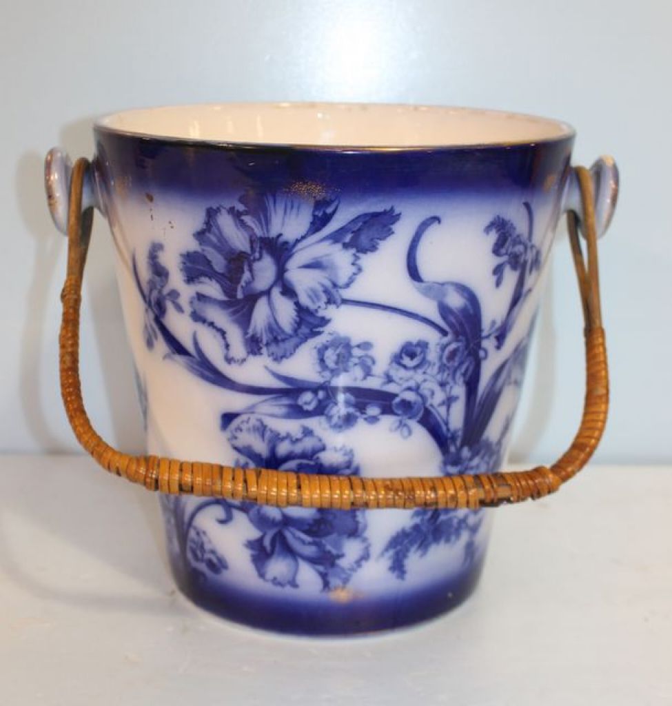 528 Tall Blue Porcelain Oriental Bucket with Handle 11" w.