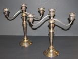 564 Pair Newport Silverplate Three Arm Candlesticks 11 1/2" h. , 11" w.