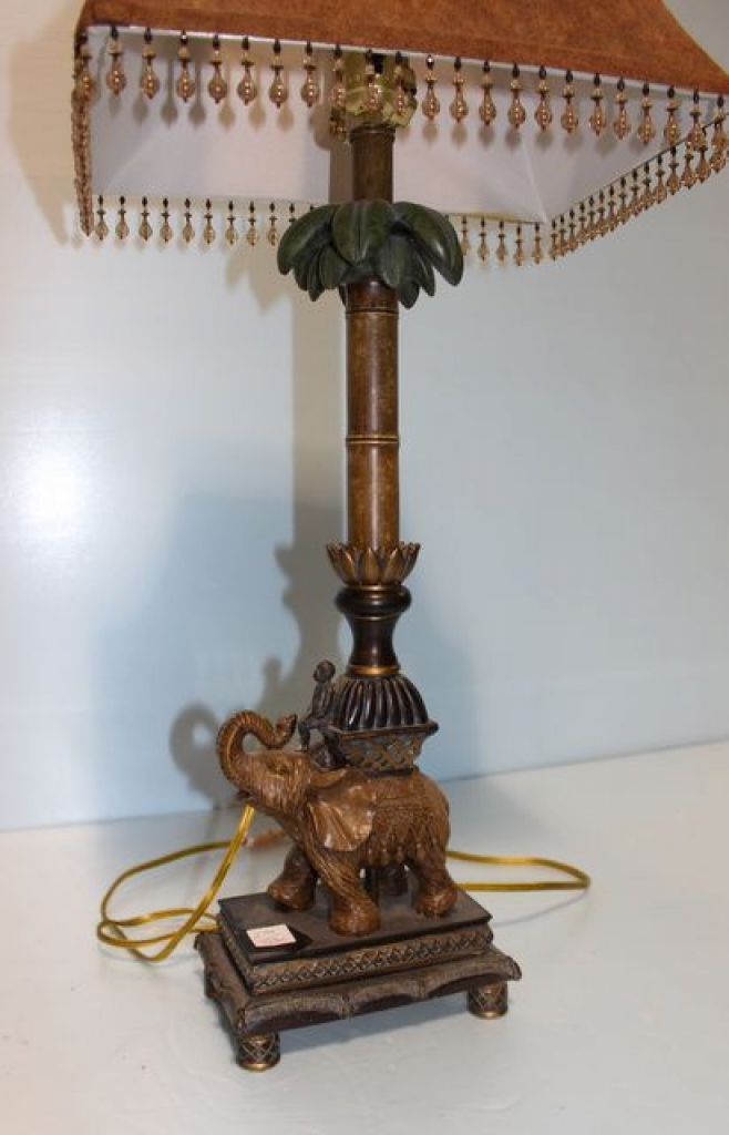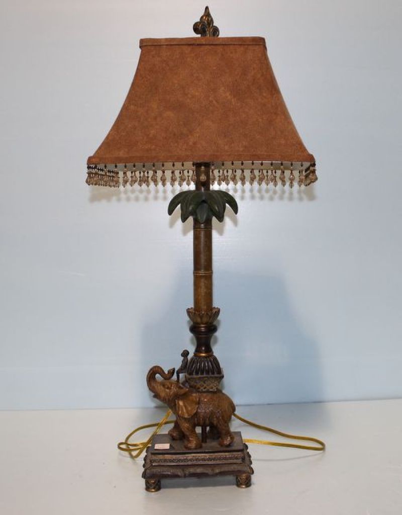 583 Elephant and Monkey Lamp with Brown Suede Fringed Shade 32" h.