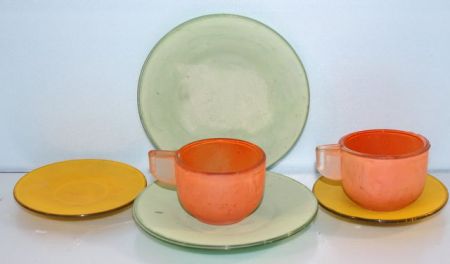 Frosted Glass Demitasse Set Two cups, two saucers, and two plates Frosted Glass Demitasse Set Two cups, two saucers, and two plates