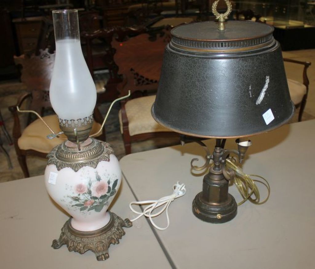 661 Two Lamps One lamp is metal 23" h., ; other lamp is porcelain