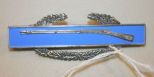 Vintage Sterling and Enamel Long Rifle Brooch Pin one circular Back Missing on stick Vintage Sterling and Enamel Long Rifle Brooch Pin one circular Back Missing on stick