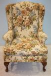 815 Queen Anne Style Wing Back Chair In floral fabric; 44" h.