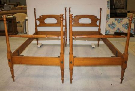 Pair of Maple Twin Beds Pair of 19th century maple twin post beds, 50"h. Pair of Maple Twin Beds Pair of 19th century maple twin post beds, 50"h.