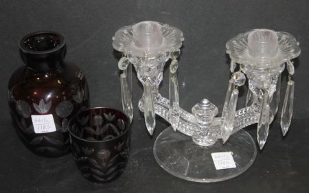 827 Romanian Cut Glass Tumble Up, Candlestick with Bobeche