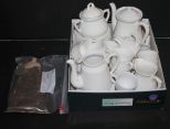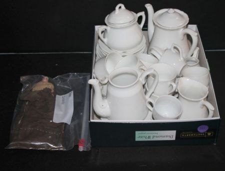Miniature Tea Set and China Doll one leg missing Miniature Tea Set and China Doll one leg missing